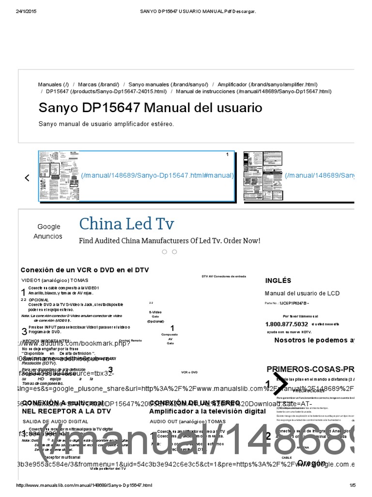 Credit To @ SANYO DP15647 USUARIO MANUAL Pdf ...